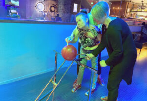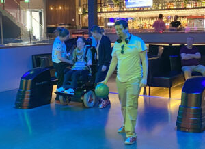 Det fina med bowling är att det finns möjlighet att alla att testa. Alla hade olika sätt att få i väg klotet, men alla kände samma fina känsla när käglorna föll.