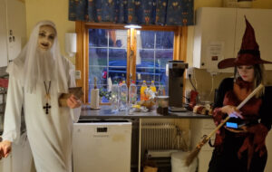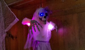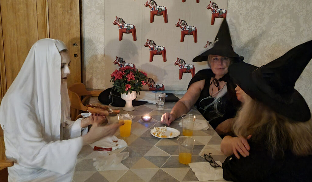 Först blev det en spökvandring med flera kusliga möten och upplevelser. När sedan vålnaden var upptäckt, och fördrivits, med skratt fortsatte festen med trevlig samvaro i matsalen med lite mat, fika och ännu mer skratt.
