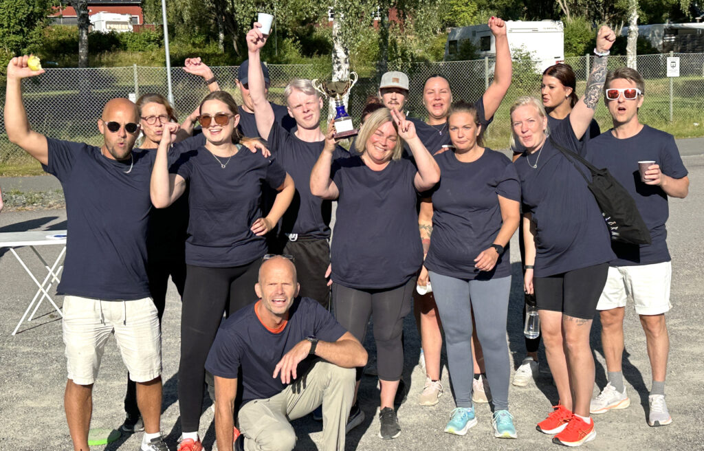 Svaret blev att vi utmanade Libra Hedera Assistans på en brännbollsmatch, vilkas medarbetare vi mött många gånger i vardagen.